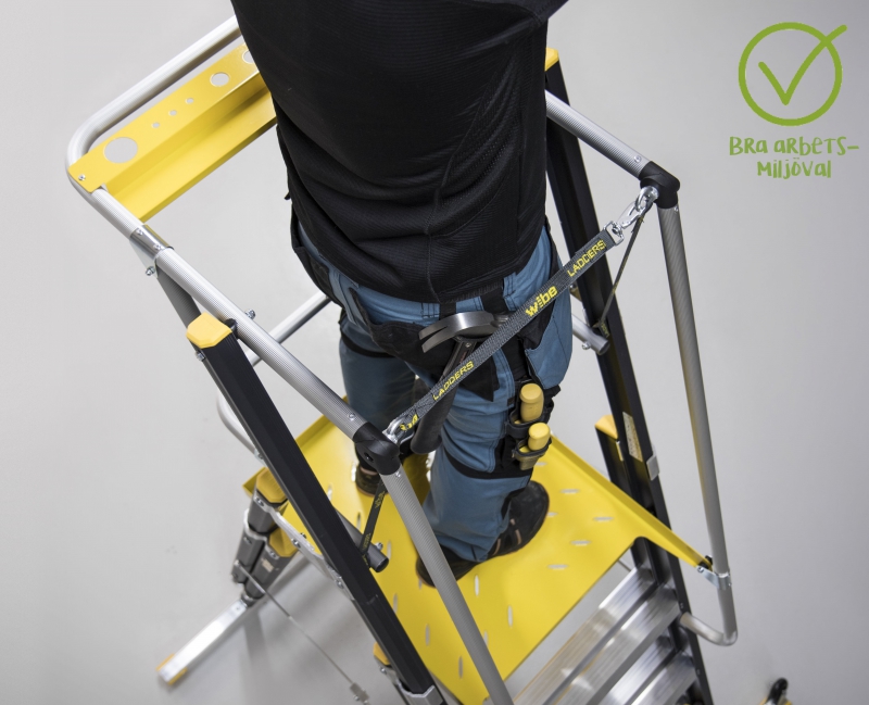 • Breda stegfötter, stabil halkskyddad ståyta och fallskydd på fyra sidor ger ökad säkerhet under arbetet.